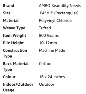 • Waterproof, Dust proof, Flexible, Strong, Eco-friendly PVC, Heavy Duty, Anti-fatigue, Anti-static, Flame retardant, Shrink-Resistant, Corrosion resistant and Wear and tear resistant, Heavy Quality, Soft Cushioning – Stress Releaser, Easy Cleaning, Non-slip, Decorative, Pleasing Color.. Soft Cushion Feel. Sturdy enough to ploy Dirt. Attractive Stylish Looks with Serving Purpose(Keeps floor Clean & Hygienic) and Durable For Every day to day Use Long Lasting, Can With stand Any Weather Condition