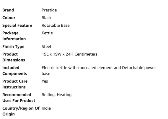 • COMPACT DIMENSIONS: With a 1.5L capacity and dimensions of 19L x 19W x 24H centimeters, this Prestige Electric Kettle for hot water is designed for space-saving elegance ELEGANT HANDLE WITH SINGLE-TOUCH LID LOCKING: For convenient use and safety